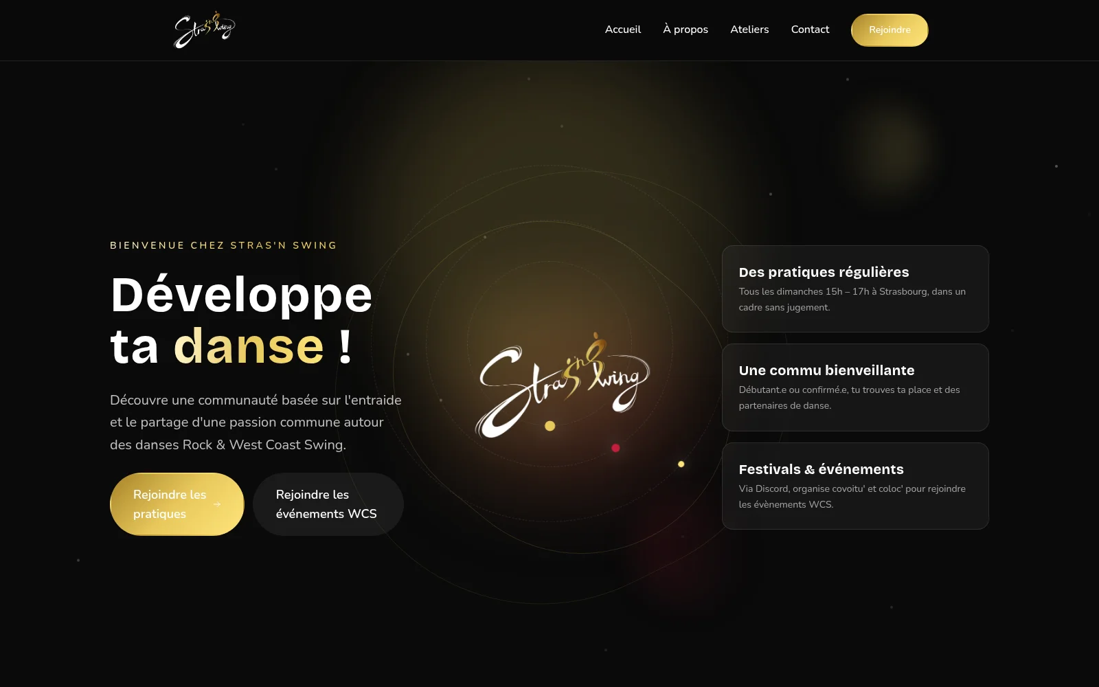 Site communautaire pour les passionnés de Rock et West Coast Swing à Strasbourg. Pratiques hebdomadaires, événements et communauté bienveillante. Site en cours de développement.